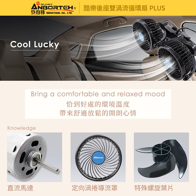 【威能汽車百貨】安伯特ABT-E090酷樂後座雙渦流循環扇PLUS (車用電扇 車用電風扇 後座風扇)
