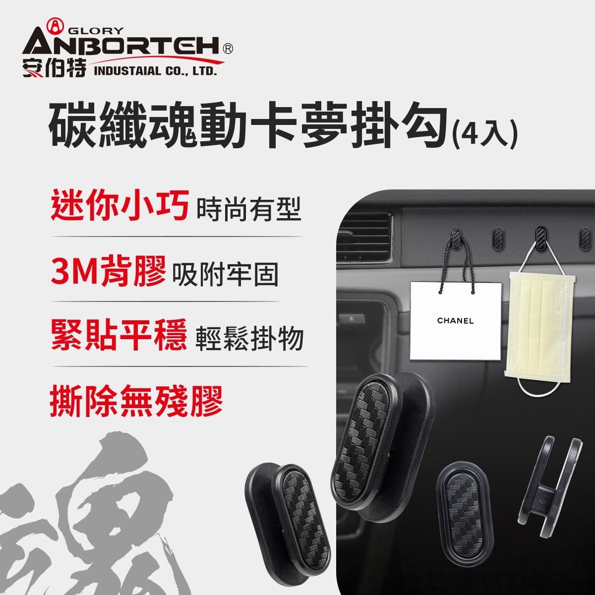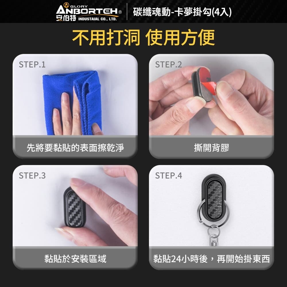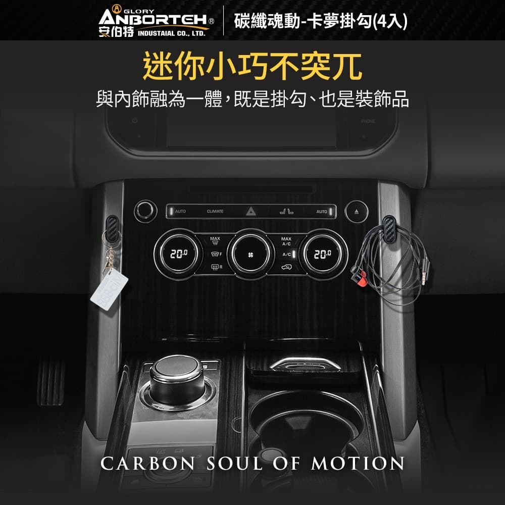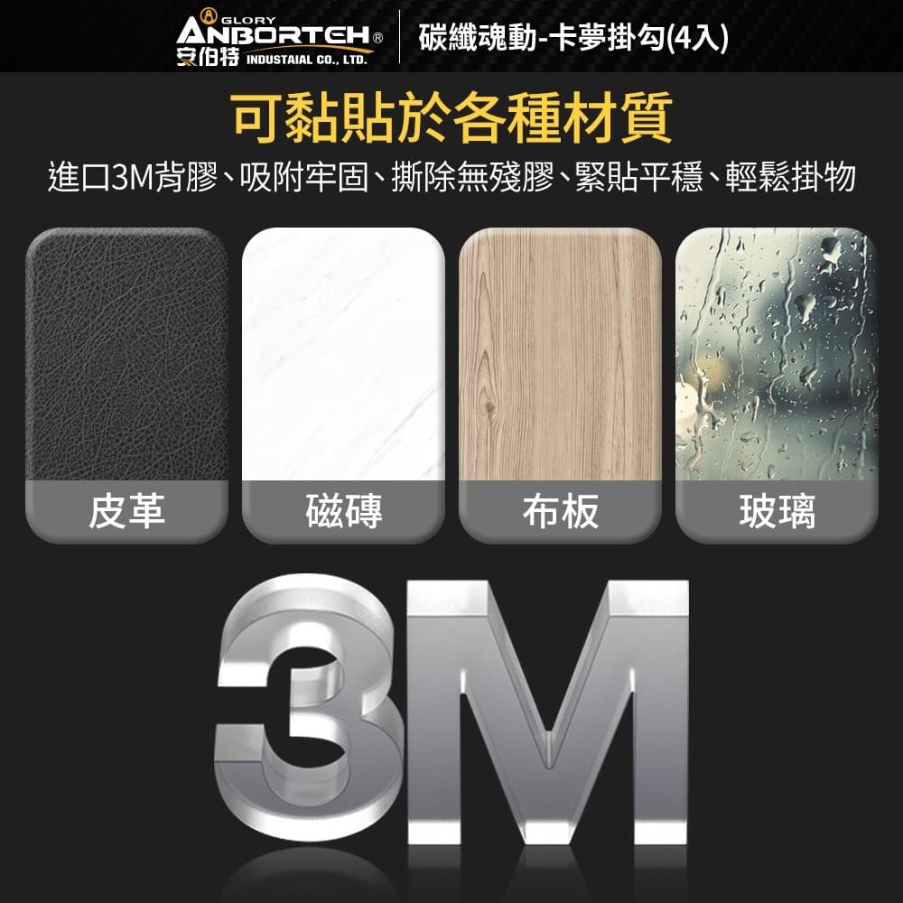 (1)迷你小巧、3M背膠、吸附牢固 (2)進口3M背膠,撕除無殘膠,可黏貼於各種材質 (3)緊貼平穩、輕鬆掛物 (4)車用/家用,黏緊不掉、小巧隱形 (5)碳纖卡夢款,與內飾融為一體,是掛勾也是裝飾品