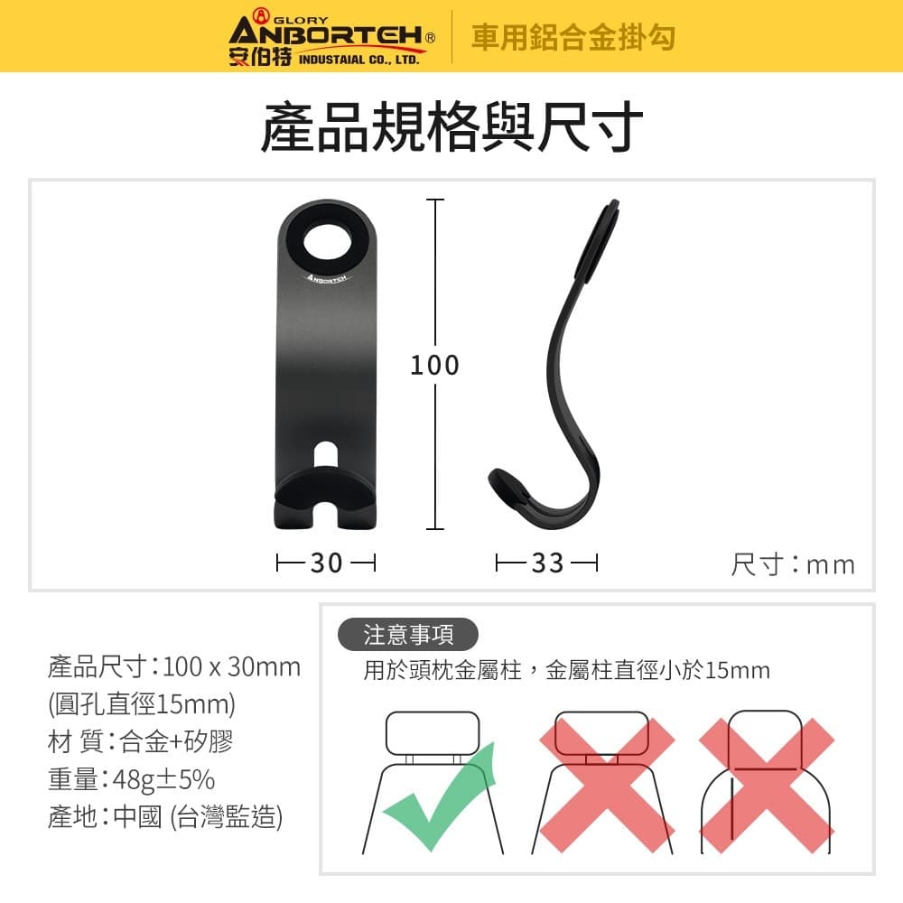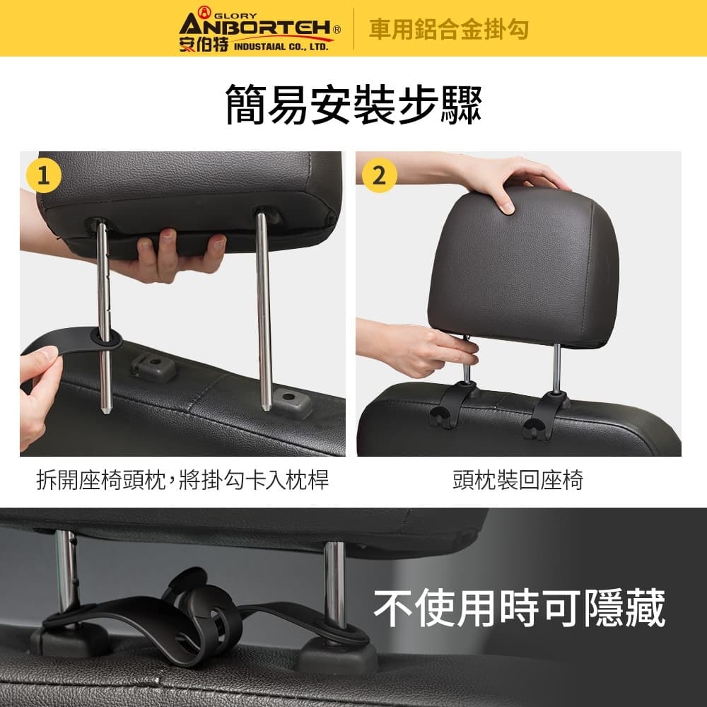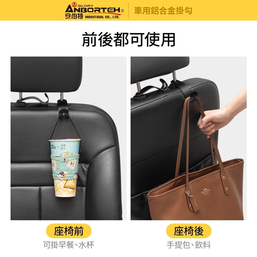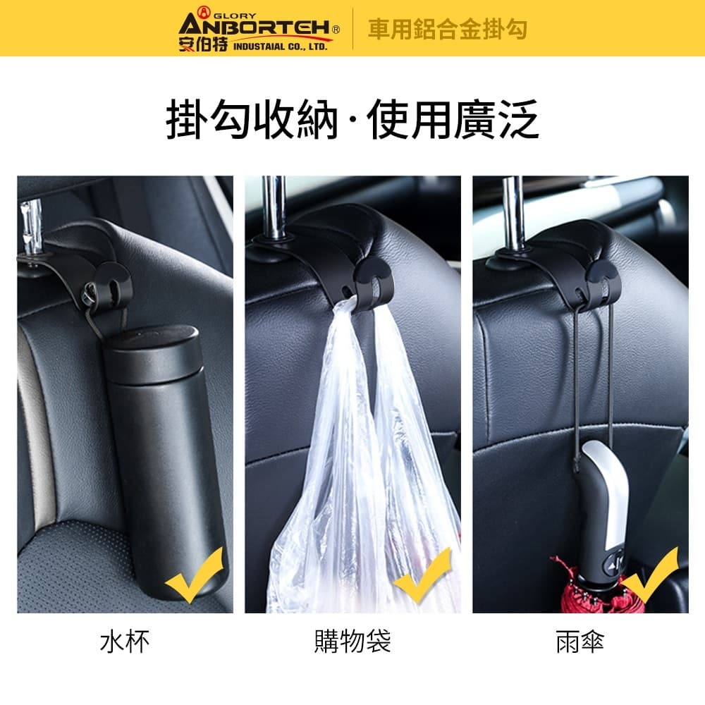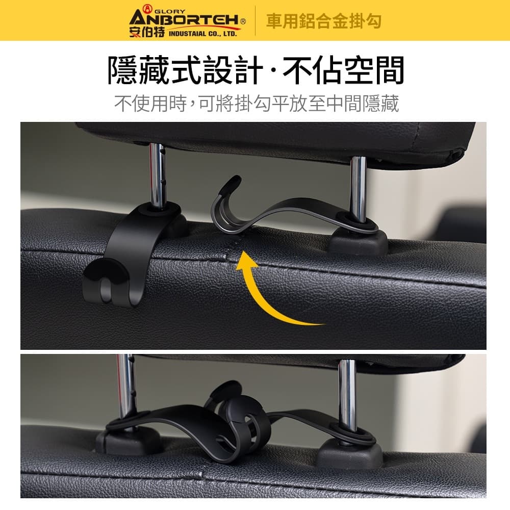 (1)耐用不斷裂,30kg超強承重,座椅前後都可使用 (2)採用S流線型設計,能更貼合椅背,穩固不滑動 (3)提袋、包包、早餐、飲料、購物袋、雨傘等均能隨手掛 (4)不使用時,可將掛勾平放至中間隱藏,不佔空間 (5)掛勾合金材質,平滑細膩、不傷愛車 (6)固定圈中搭配矽膠,護車防滑、抗震緩衝 ※注意事項:用於頭枕金屬柱,金屬柱直徑需小於15mm