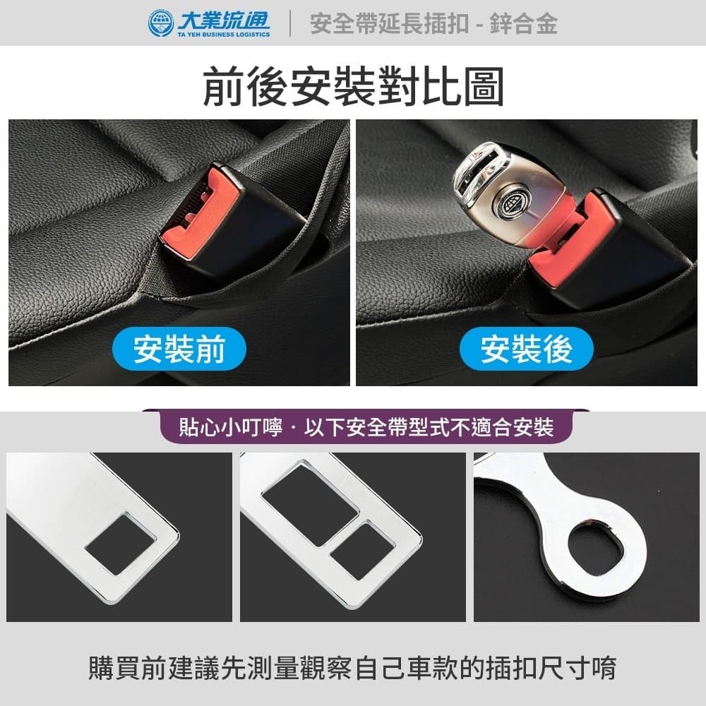 (9)購買前建議先測量觀察自己車款的插扣尺寸,部分安全帶型式不適合安裝