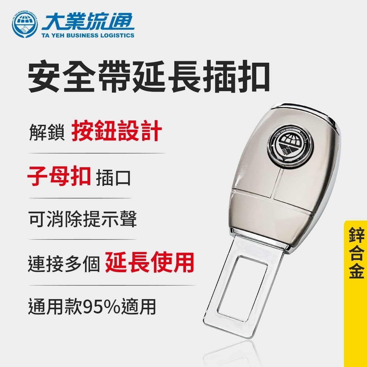 (1)汽車安全帶延長,鋅合金材質、光澤亮麗、延長專用