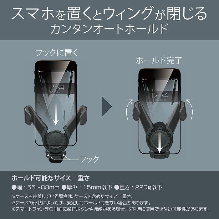 自動夾緊式設計,直接將手機放入夾具, 利用手機重量下壓後夾具自動夾緊手機。