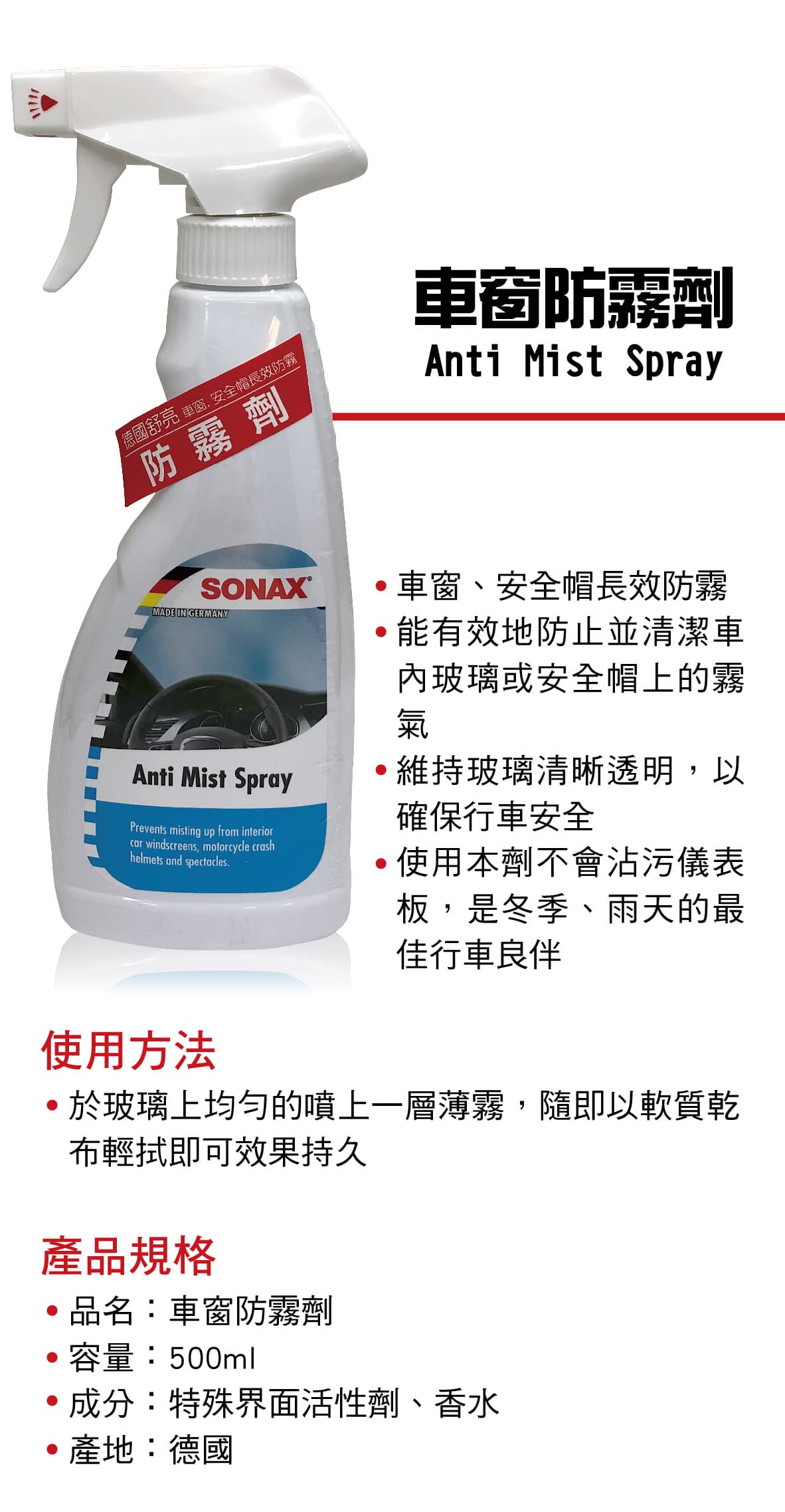 (1)車窗、安全帽長效防霧 (2)能有效地防止並清潔車內玻璃或安全帽上的霧氣 (3)維持玻璃清晰透明,以確保行車安全 (4)使用本劑不會沾污儀表板,是冬季、雨天的最佳行車良伴